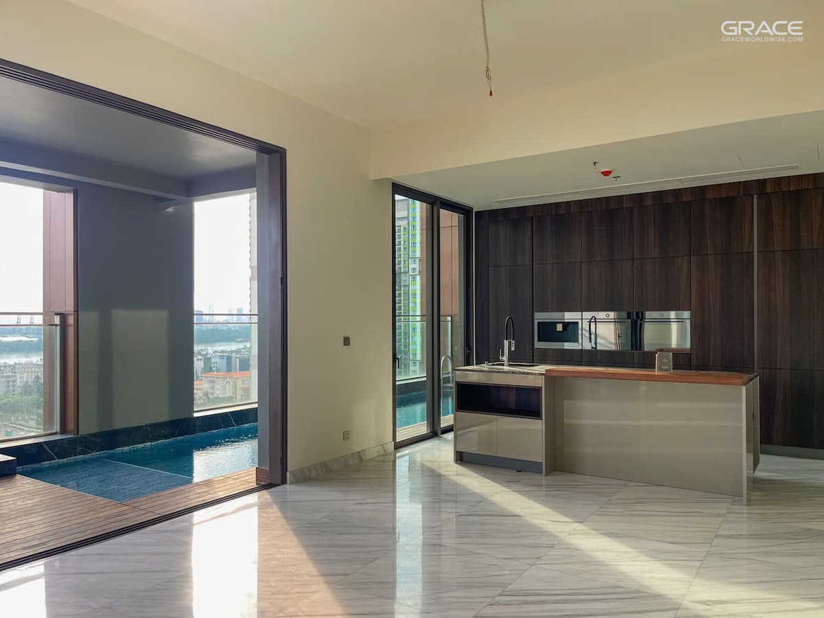 DEFINE offers an exceptional range of 3- and 4-bedroom apartments and fully equipped penthouses, with sizes from 197 m² to 528 m². Every residence is crafted with meticulous attention to detail and fitted with premium appliances from globally renowned brands such as Gessi, Poliform, Villeroy & Boch, and V-Zug—marking the first appearance of Poliform and V-Zug in a residential project in Ho Chi Minh City.