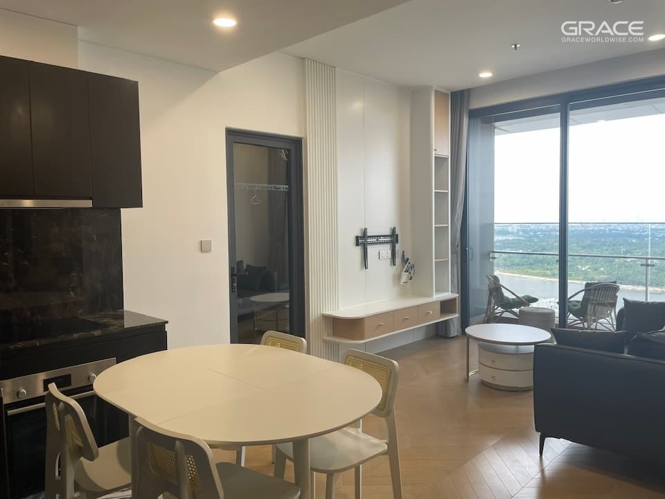 Residences: 1–3 bedroom apartments, floor‑to‑ceiling windows, panoramic Saigon River views.