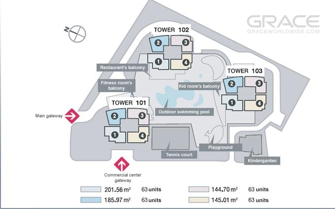 The luxury apartment XI Riverview Palace focuses on the design lines and surfaces of the building that harmonize with the surrounding natural environment. The front of XI Riverview Palace is designed to overlook the panoramic riverside view. The building's design lines not only blend with nature but also provide sound insulation from neighboring apartments.