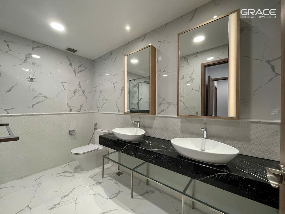- Delivery standards: Basic finished delivery including: wall-integrated furniture, toilet, kitchen,… Brands: Duravit, Bosch, Hansgrohe,… Rough delivery (customers can choose).